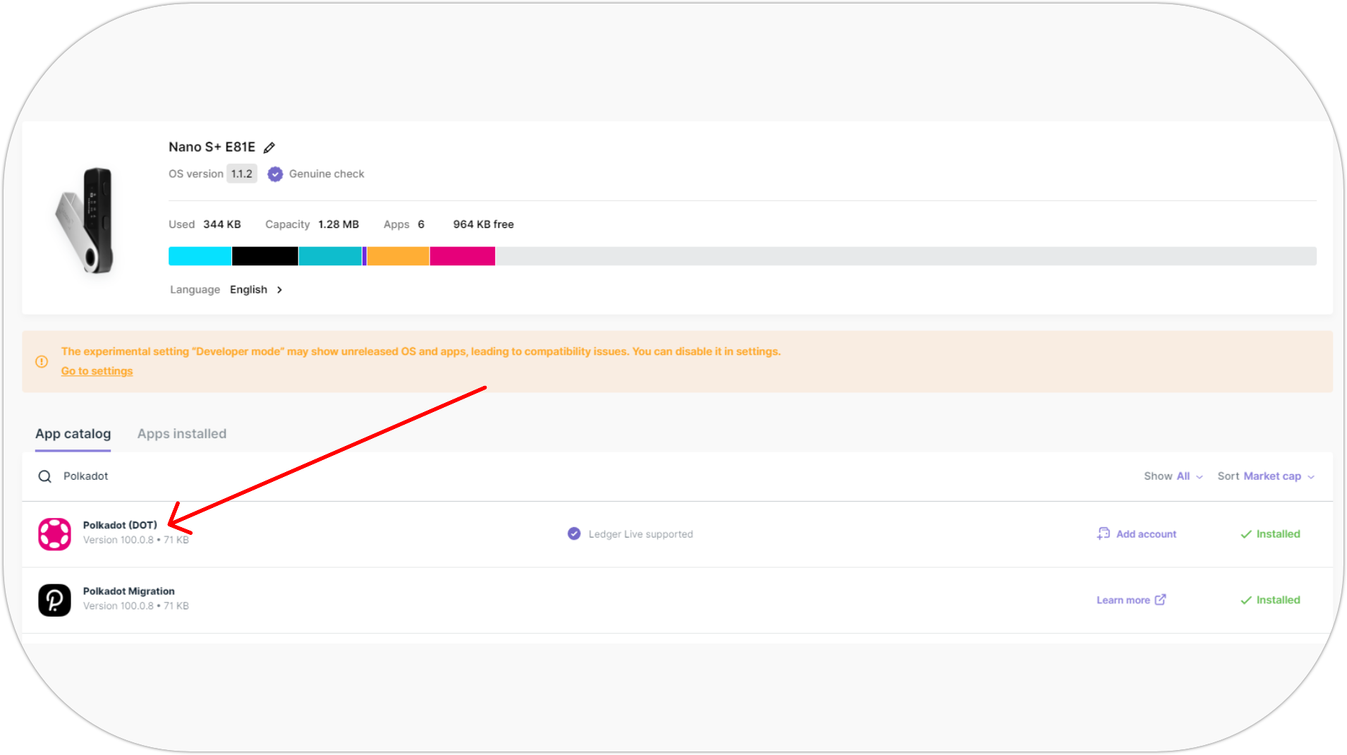 My Ledgerto access your device; - Search for Polkadot Migration (Version