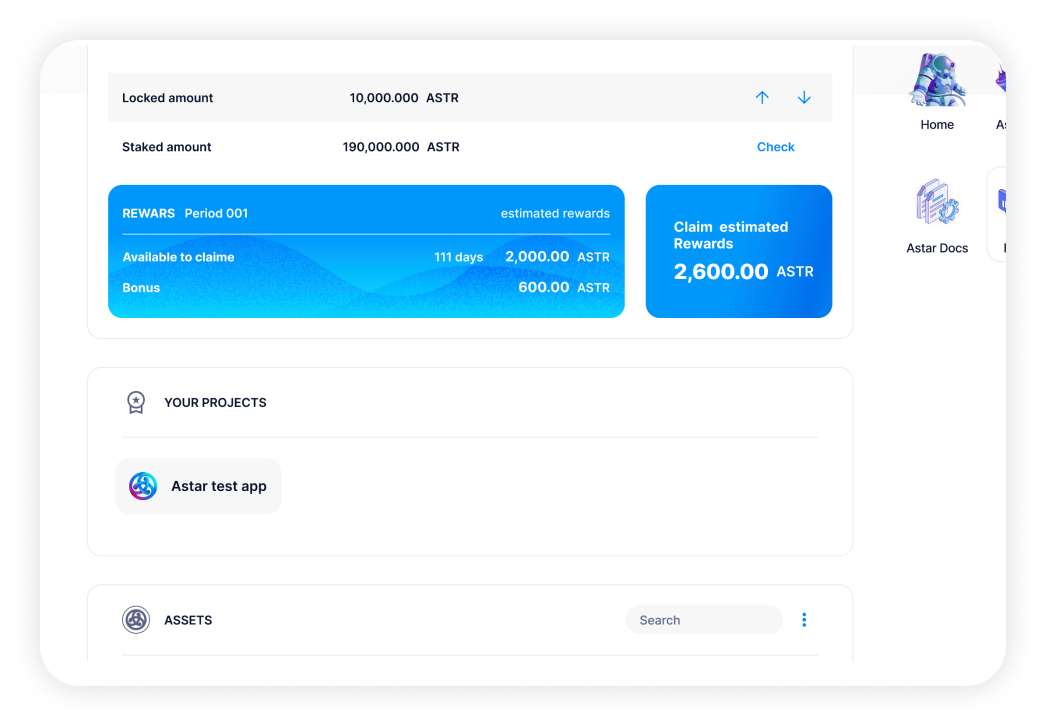 As a dApp owner, a new panel will appear in the Asset page of the Astar portal: Your Project ;