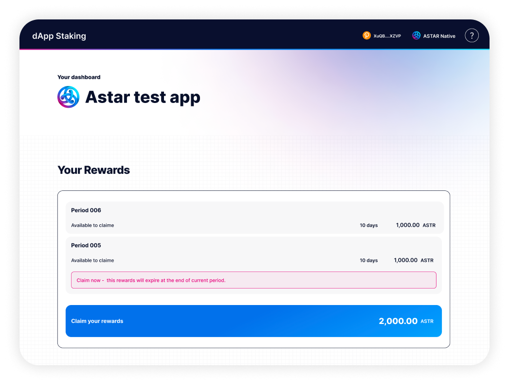 Manage dApp & claim rewards