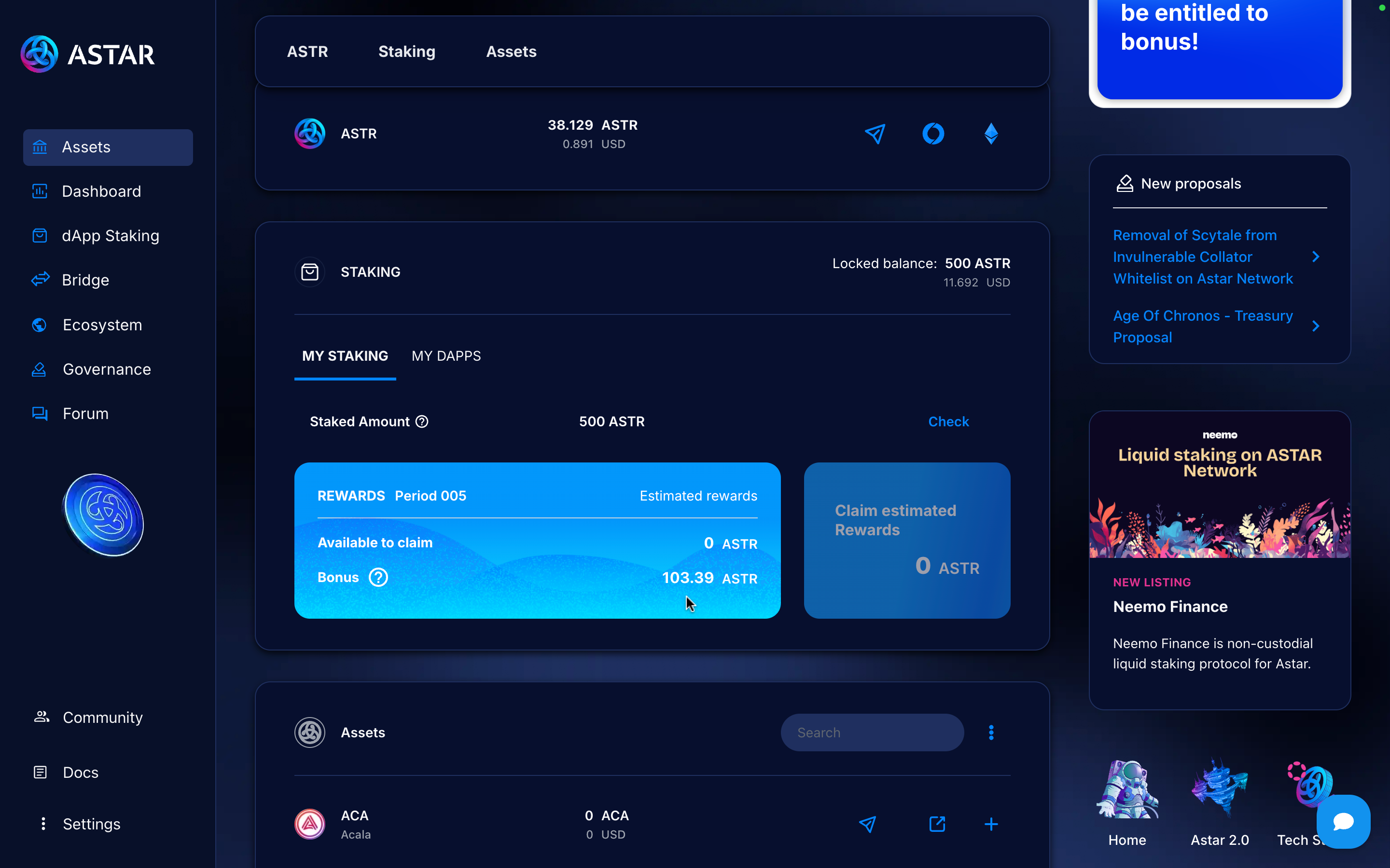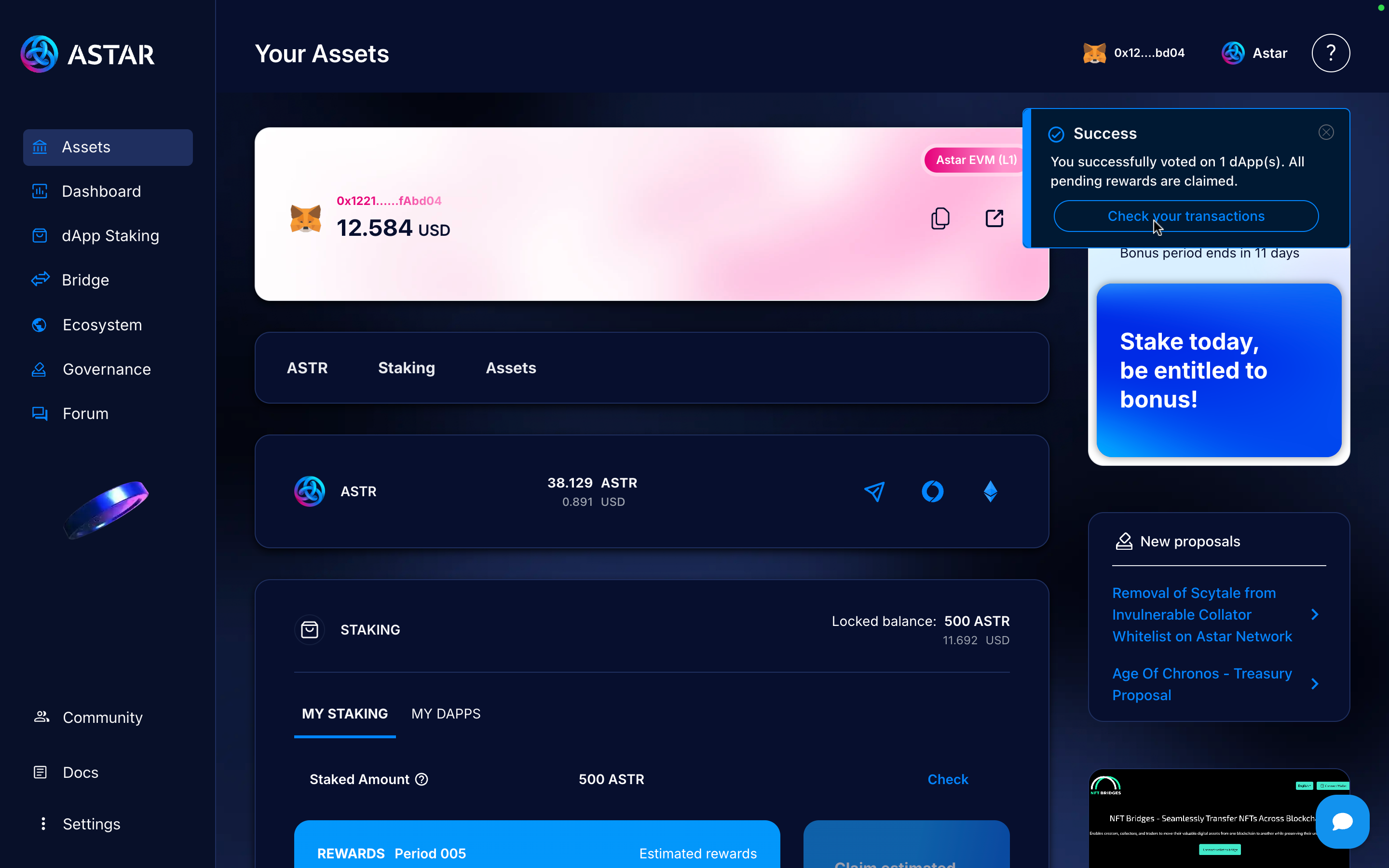 Finally, you’ll be able to see your balance. Go back to the Assets screen. In the Staking section, you’ll be able to view your staked balance and more.