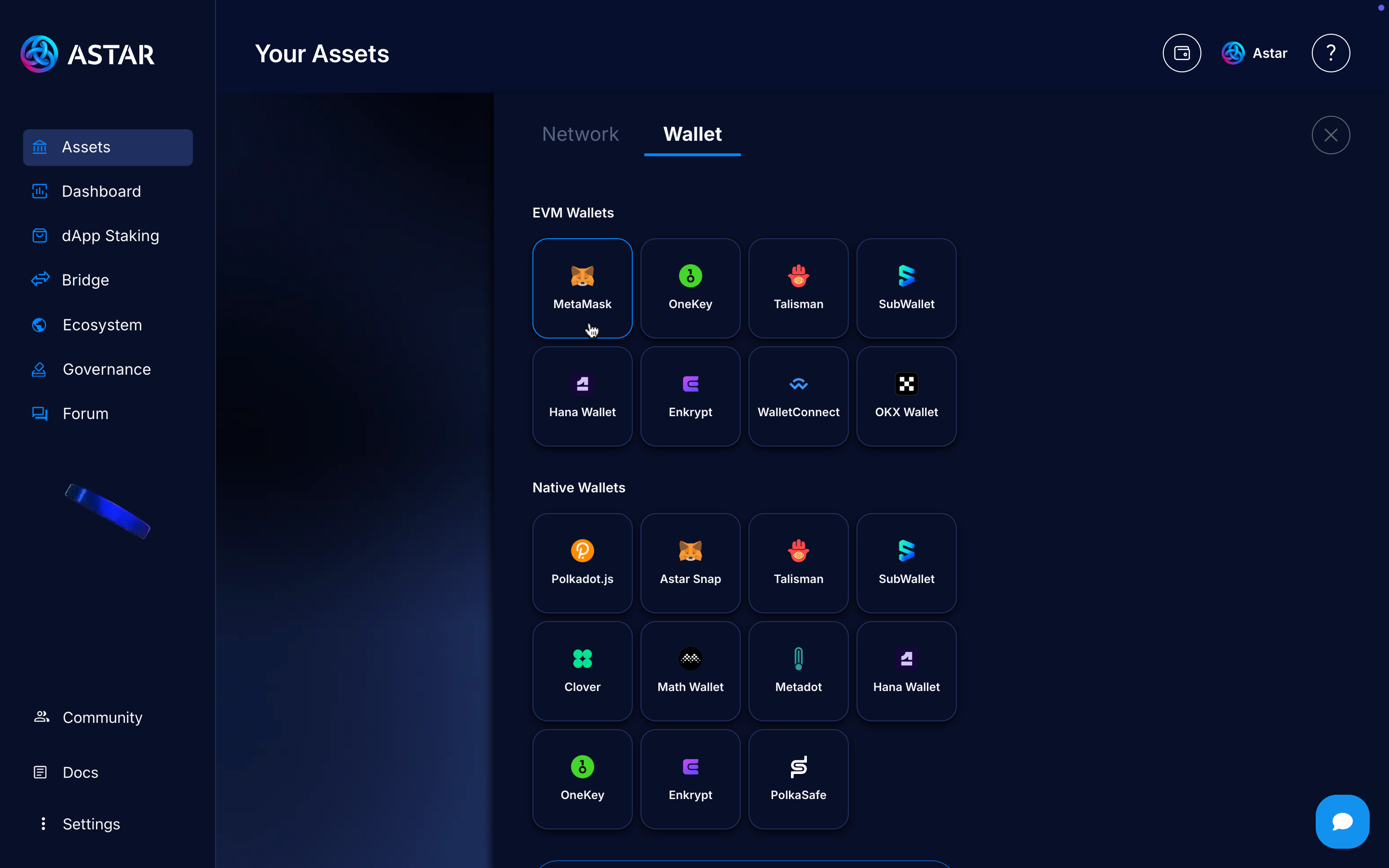 Go to our Astar Portal, the site where you can manage your funds and accounts within Astar ecosystem.