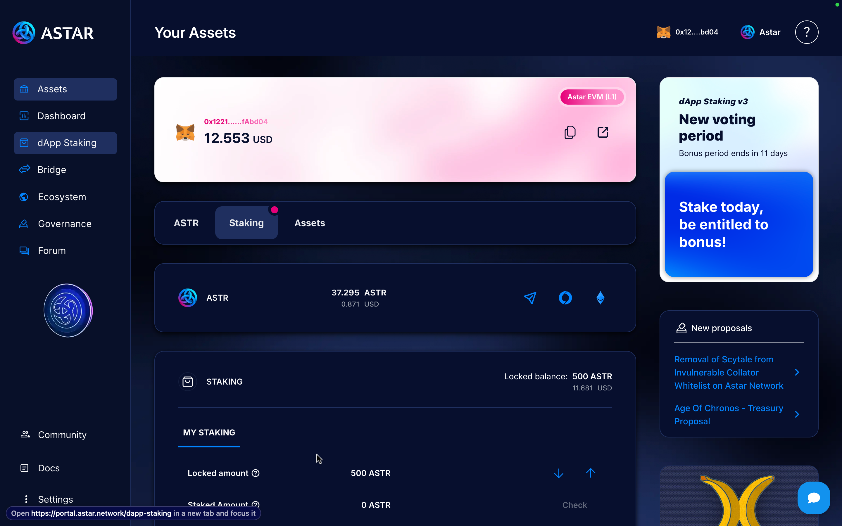 In this guide, you’ll learn how to stake ASTR on Astar Network (L1) using the Astar Portal and the Zerion wallet on the EVM version, which works similarly to the Substrate version. To complete this tutorial, you’ll need: